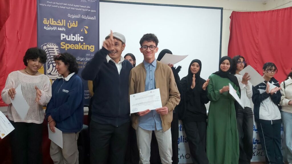 احتضن المركب التربوي بخريبكة يوم السبت 26 أبريل 2025 فعاليات المسابقة الإقليمية النهائية لفن الخطابة باللغة الإنجليزية لفائدة تلميذات وتلاميذ التعليم الثانوي التأهيلي بقطاعيه العمومي والخصوصي، والتي نظمها الفرع المحلي للجمعية المغربية لأساتذة اللغة الإنجليزية بشراكة مع المديرية الإقليمية لوزارة التربية الوطنية والتعليم الأولي والرياضة. وقد عرفت هذه التظاهرة التربوية المتميزة مشاركة واسعة من مختلف مدن الإقليم، بما في ذلك أبي الجعد ووادي زم وحطان وخريبكة، وسط إشادة كبيرة بحسن التنظيم وقيمة الحضور النوعي. استُهل الحفل بكلمة للسيد البشير بوحسين عن المديرية الإقليمية، نوه فيها بدور الجمعية في تنشيط الحياة المدرسية، متبوعة بكلمة الأستاذ عبدالهادي خلفادير رئيس الجمعية المغربية لأساتذة اللغة الإنجليزية، الذي شكر الأساتذة والأستاذات على التأطير الفعال كما وجه تحية تقدير للمفتشية الإقليمية للغة الإنجليزية ومصلحة الأنشطة التربوية بالمديرية على دعمهم المتواصل. وقدم السيد سعيد أحسن، مفتش اللغة الإنجليزية بإقليم خريبكة، كلمة شرح فيها معايير التقويم التي ارتكزت عليها لجنة التحكيم لضمان الإنصاف والشفافية. وقد كانت المسابقة فرصة لإبراز قدرات التلاميذ في التعبير والخطابة، من خلال تناولهم لمواضيع راهنة أثارت اهتمام لجنة التحكيم والجمهور، كالعنف المدرسي، والذكاء الاصطناعي، والتواصل الاجتماعي، حيث أبان المشاركون عن مهارات لغوية قوية وحضور ذهني متميز. وقد تشكلت لجنة التحكيم من الأستاذ عبدالكبير التنساوي، والأستاذ طارق بنعزوز، والأستاذة نجاة مبارك، تحت رئاسة المفتش الإقليمي السيد سعيد أحسن، مما منح المسابقة مصداقية أكاديمية عالية. وبعد منافسة قوية، توجت التلميذة ندى المزموم من ثانوية الموحدين بالرتبة الأولى، وحلت التلميذة مريم زكاغي من ثانوية الإمام التأهيلية ثانية، فيما نالت التلميذة مروة قراوش من مؤسسة الإقامة الرتبة الثالثة. وقد أضفى تنشيط الأستاذة جريش على الحفل حيوية خاصة، مما ساهم في إبراز روح التنافس الإيجابي. هذا وقد عبر الجميع عن اعتزازهم بمستوى التنظيم والمشاركة، مؤكدين أهمية مثل هذه المبادرات في تعزيز الثقة بالنفس وتطوير الكفايات التواصلية لدى المتعلمين، ومشددين على أن الاستثمار في مهارات الخطابة باللغة الإنجليزية يشكل ركيزة أساسية لإعداد جيل قادر على التفاعل مع تحديات العصر ومواكبة مستجدات العالم.