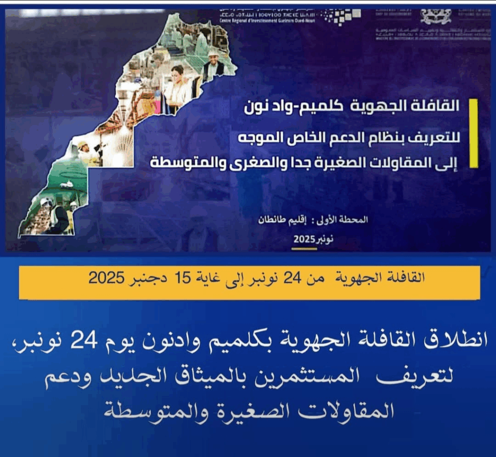 الرئيسية / اقتصاد / انطلاق القافلة الجهوية كلميم وادنون للتعريف بنظام الدعم الخاص الموجه إلى المقاولات الصغيرة جداً والصغرى والمتوسطة