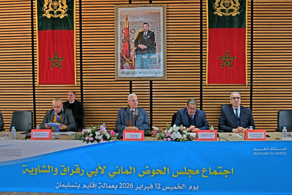 في بداية كلمته الافتتاحية، أشار السيد عامل إقليم بنسليمان، بعد الترحيب بأعضاء المجلس، أن الوضعية المائية شهدت تحسنا ملموسا بعد التساقطات المطرية المهمة التي شهدها الحوض ابتداء من شهر دجنبر 2025 و التي كان لها أثرا كبيرا على الواردات المائية مكنت من رفع نسبة ملأ السدود المتواجدة بالحوض متجاوزة بذلك الوضعية المقلقة المسجلة بنفس الفترة من السنة الماضية. وأكد السيد العامل على أنه ورغم هذا التحسن، يجب علينا جميعا قطاعات حكومية وغير حكومية ومنتخبين ومجتمع مدني، التدبير الأمثل لهذه المادة الحيوية تماشيا مع التوجيهات السامية لصاحب الجلالة الملك محمد السادس نصره الله والتي ما فتئ جلالته يؤكد عليها في العديد من المناسبات، حيث ترجمت إلى تدابير استعجالية للحد من آثار الجفاف وتسريع وتيرة إنجاز المشاريع المسطرة بالبرنامج الوطني الاستعجالي 2020- 2027 للتزويد بالماء الشروب و مياه السقي. ومن جهته، تقدم السيد سعيد التدلاوي، رئيس مجلس الحوض المائي لأبي رقراق والشاوية، في كلمته بالشكر لجميع الأعضاء على تلبية الدعوة وحضور هذا الاجتماع، من ممثلي السلطات الحكومية و المؤسسات العمومية المعنية وممثلي مجالس الجهات والعمالات والأقاليم وممثلي الغرف المهنية والجمعيات والجماعات السلالية والشركات المكلفة بتوزيع وإنتاج الماء على صعيد الحوض وكافة أعضاء مجلس الحوض، وأكد أن هذا الاجتماع يشكل تكريسا للمقاربة التشاركية و المندمجة و المستدامة التي رسخها قانون الماء 15-36 و يشكل كذلك انفتاحا لوكالة الحوض المائي لأبي رقراق والشاوية على جميع شركائها و الهيئات المنتخبة للتشاور حول الإكراهات والتحديات المرتبطة بتدبير هذه المادة الحيوية. كما ذكر السيد الرئيس على أنه رغم تحسن وضعية الموارد المائية بالمغرب عامة وبحوض أبي رقراق و الشاوية خاصة، يبقى خيار التدبير الأمثل والاستعمال المعقلن و ترشيد الاستهلاك لهذه المادة الحيوية ضروري وذلك تماشيا مع التوجيهات الملكية السامية لصاحب الجلالة الملك محمد السادس نصره الله والتي ما فتئ جلالته يؤكد عليها في العديد من المناسبات،بعد ذلك قدم ممثلو وكالة الحوض المائي لأبي رقراق والشاوية عروضا حول الحالة الراهنة للموارد المائية بالحوض والمشاريع المهيكلة والاستعجالية المتخذة والمبرمجة للاستجابة للطلب على الماء و مشروع التدبير التشاركي للفرشة المائية لبرشيد وأبرزوا أهمية التشاور الدائم مع هيئات الحكامة الخاصة بتدبير قطاع الماء على مستوى الحوض لبلورة رؤية واضحة فيما يتعلق بالتدبير التشاركي لموارد المياه وخاصة الجوفية، كما تم عرض مشروع القانون الداخلي للمجلس. وبعد المناقشة وتبادل الآراء تمت صياغة مجموعة من التوصيات الهامة وكذا المصادقة بالإجماع على مشروع القانون الداخلي للمجلس.وفي ختام هذا الاجتماع، تمت تلاوة برقية ولاء وإخلاص مرفوعة إلى السدة العالية بالله صاحب الجلالة محمد السادس نصره الله وأيده.