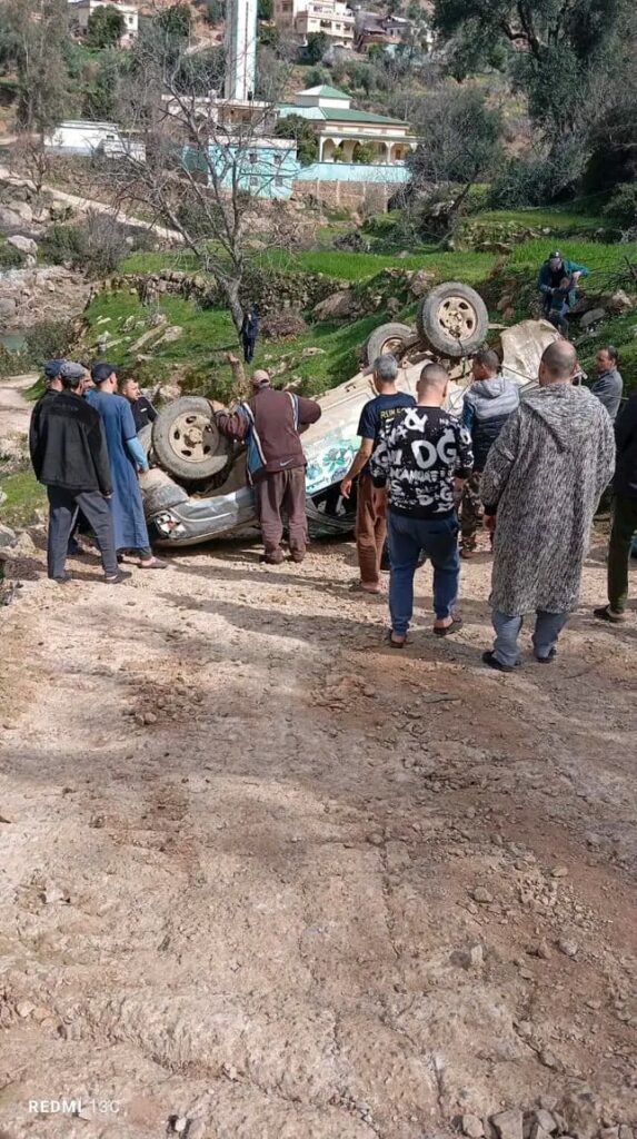 الحسيمة: انقلاب سيارة بيكوب محملة بالزيتون، نجاة الركاب وروح التضامن تسود